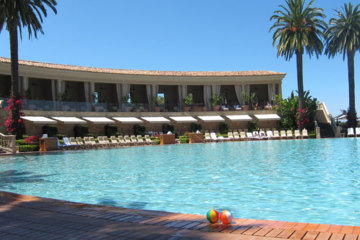 Workers cut and laid more than 1.1 million glass tiles in the grand salt-water Coliseum Pool, one of the largest circular pools in the world. Stands of olive trees were planted throughout the property to recreate northern Italy in southern California. Tapestries from the 17th century hang in the Great Room off the lobby. The classic Italian Rotunda, a domed structure, sits between the courses 300 feet above the ocean in an ideal spot for weddings and outdoor banquets.